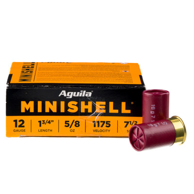 Aguila Ammunition is the originator of the commercially available Minishell shotshell. A full inch shorter than a standard 12 gauge shotshell, the Minishell still produces a shot velocity of 1200 fps with a 5/8 oz. load, and produces lower recoil. The Minishell is perfect for use in break-action shotguns for clay shooting sports. Some models of pump-action shotguns will accept and function with the Minishell too, increasing magazine capacity. Minishells are crafted with the same quality as full-size Aquila shotshells for reliable performance.Aguila Ammunition 12 Gauge Minishell Shotshell Specifications and Features: