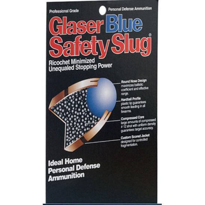 Cor-Bon's commitment to providing quality ammunition continues with the Glaser Blue Safety Slug line of personal protection/self-defense ammunition. The Blue safety slug is designed to be used in situations where over penetration is a concern. Ideal for close quarter security, this round causes significant soft tissue destruction but reduces the possibility of ricochet's from contact with hard surfaces. Glaser Blue produces immediate energy dispersal creating abrupt stopping power. Make no mistake this is lethal ammunition.