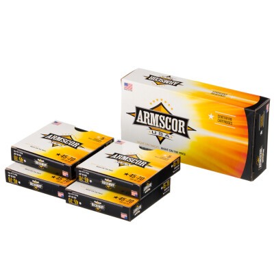 The .45-70 Government was originally named “.45-70-405” after its bullet diameter, volume of black powder, and bullet weight. That name would not apply to this modern ammunition by Armscor, of course. It’s bullet diameter still qualifies, although it is loaded with a lighter charge of modern smokeless propellant *and* its bullet is considerably lighter at 300 grains.
