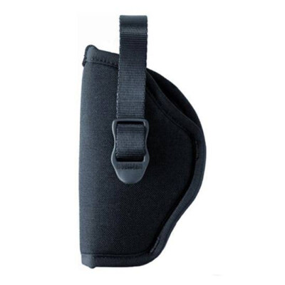 BLACKHAWK!s classic, medium high ride design allows you to carry your favorite revolver or auto on any belt up to 2" wide. The BLACKHAWK! Hip Holster is made of 1000 denier nylon, closed-cell foam padding and smooth nylon lining with a tough nylon web retention strap that has a combination adjustment buckle and sturdy snap for an easy draw. The holster features a nylon web sight channel and the extra strength injection molded belt loop accepts belts up to 2".