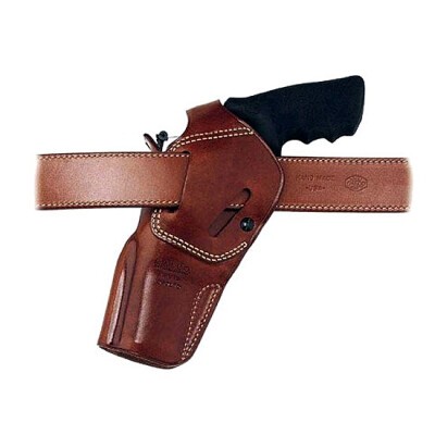 The DAO can be worn strong side or crossdraw at the user's discretion. The holster employs a retention strap for simplicity and security in the brush. The retention strap has a large polymer tab to aid in snapping and unsnapping with a gloved hand. Tension screw adjustments allow for a custom fit to your revolver.