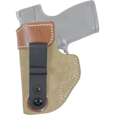 SOF-TUCK is a new Inside the Waistband Tuck-able holster with adjustable cant. It can be worn strong side, cross draw or on the small of the back. It is built from soft, no-slip suede and reinforced at the top with premium saddle leather to aid in re-holstering.