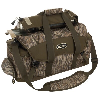 The Drake Waterfowl Blind Bag is loaded with features and plenty of room to carry almost everything you need for your hunt. Constructed of HD2 material, with a water-proof, heavy-duty nylon and thermoplastic urethane bottom which extends about 2" up the side of the bag, the Blind Bag is tough and weather resistant. An interior seam-welded vinyl liner, which is overlaid with a vinyl organizer, provides waterproof protection from the bottom of the bag to the zipper. With 20 pockets storage is not going to be an issue. The large front outer pocket has shell loops and the two end pockets, which are perfect for extra ammo boxes, have drainage grommets to keep water from collecting inside the pockets. There is even an exterior sunglasses pocket. A clear vinyl map pocket and clear vinyl cell phone pocket help keep your documents and phone dry. An improved thermos/jacket sleeve on the top flap provides a dedicated space for your bulky gear. Five padded panels protect your gear from rough handling in field. Designed for the roughest hunting conditions, the Drake Waterfowl Blind Bag can carry the gear you need.Drake Waterfowl Extra Large Blind Bag Specifications and Features: