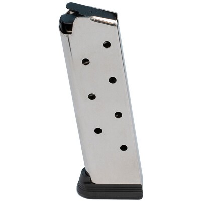 The Ed Brown 1911 Government Magazine is a standard factory replacement magazine. This magazine is for 1911 models chambered in .45 Auto and holds 7 rounds of ammunition. It is made from stainless steel and features a natural finish. This magazine is made to ED Brown's specifications and tolerances, using the same manufacturing and materials as the original equipment magazines, ensuring perfect fit and operation.