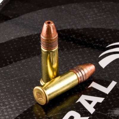 This cartridge is loaded with a 36 grain bullet instead of the usual 40. That means Federal spent 10% less on lead while loading this ammo. That also means the bullet gains higher muzzle velocity without generating greater pressure in turn. According to Federal’s 24” test barrel, the .125 G1 BC bullet conserves quadruple-digit velocity until around 100 yards, and strikes the same distance with 80 ft lbs kinetic energy.