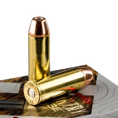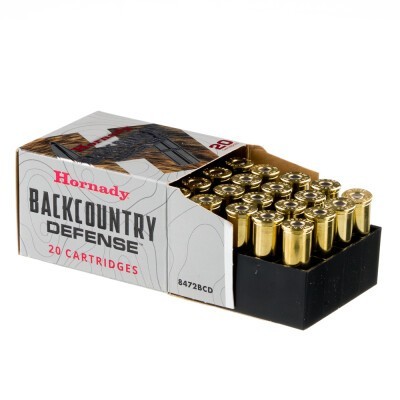 This is Hornady’s answer to the bear question, though it’ll work wonders on boars, mountain lions, and rutting moose, too. Each Backcountry Defense label cartridge hurls its 240 grain bullet at a muzzle velocity of 1,620 fps (8” test barrel), which translates to 1,147 ft lbs striking energy at 50 yards; 943 ft lbs at 100.