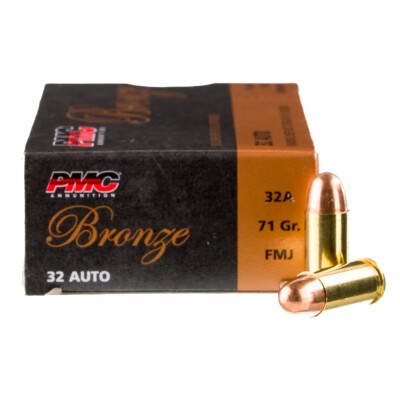PMC Bronze .32 ACP is perfect for budget minded shooters that want a quality and reliable ammunition. These are loaded with 71 grain full metal jacket projectiles that are great for training or punching holes in paper. The bullet has a lead core which doesn't attract a magnet and are allowed at the majority of indoor and outdoor ranges. PMC produced these with non-corrosive boxer primed brass, so collect your empties and reload them when you are ready. Whether you have a newly manufactured or classic .32 Auto, grab a bulk 1000 round case of PMC Bronze and spend a day of fun at the range shooting with friends and family.