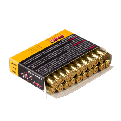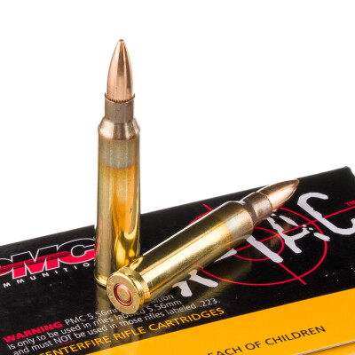 PMC X-TAC 5.56 NATO ammunition is derived from (and more powerful than) the .223 Remington cartridge. This rifle ammunition is one of the most popular ammo types used in AR-15s. The full metal jacket construction of the cartridge is an affordable choice for high volume range training. The boat-tail design of this 5.56 bullet is used by the military due to better aerodynamics and therefore a longer effective range and higher accuracy than the original flat-base design. The reloadable brass makes this 5.56 round an even better deal.