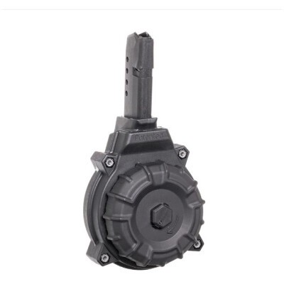 ProMag's product line offers replacement magazines, parts, and accessories for a variety of handguns, rifles, and shotguns. This aftermarket ProMag drum magazine is designed to fit the Glock 43 chambered in 9mm Luger. Its impressive 50 round capacity will turn your favorite handgun into a range monster capable of a legendary mag dump. The lower drum body is constructed of proprietary DuPont Zytel based polymer and its upper body has an internal full length steel insert. Similar to factory units, each steel insert is stamped and welded to provide exceptional strength and durability. This combination gives you the best of both worlds pairing weight savings with rigidity where it's needed most. Internally each drum is assembled with a polymer follower and heat-treated stainless-steel spring to ensure consistent performance built to last a lifetime. Speaking of lifetimes, ProMag also includes a warranty against all manufacturer defects so you can shoot in peace knowing they have your back. This American made aftermarket drum magazine is an excellent option for increasing the capacity and firepower of your Glock G43.