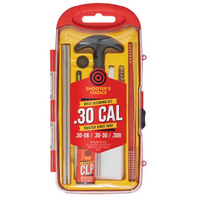 Whether you're a recreational shooter, avid hunter or competitive shooter, a clean firearm is crucial to having guns that work properly. This kit has all you need to keep your favorite guns running properly. The Shooter's Choice Cleaning Kit comes with a multi-piece aluminum cleaning rod with a swiveling T-handle that makes cleaning easier. For proper bore cleaning you get a phosphor bronze brush, a cotton bore mop and a set of cotton cleaning patches. A bottle of Shooter's Choice FP-10 Lubricant Elite CLP helps to break up carbon and protect your firearm in the field. With a convenient storage case, the Shooter's Choice Cleaning Kit is right at home in a range bag or on your work bench.Shooter's Choice Cleaning Kit Specifications and Features: