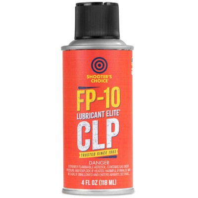 Shooter's Choice FP-10 Lubricant Elite CLP is Shooter's Choice most popular formula, and now it is available in a convenient aerosol spray can. This solution works as an all-in-one solution to clean, lubricate and protect firearms. FP-10 CLP helps to reduce friction and wear, protects against rust and corrosion as well as removes carbon, lead and powder fouling. Effective in nearly any temperature, this formula can be easily applied thanks to the fine mist application.Shooter's Choice FP-10 CLP Specifications and Features: