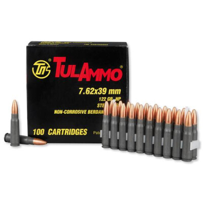 This TulAmmo 7.62x39mm cartridge is a great choice for hunting and self-defense through bolt-action and semi-automatic rifles and carbines. The polymer-coated steel casing helps this ammunition keep its qualities under various climatic and weather conditions independent of the season and at a temperature from -20C to +50C (-4F to +122F). These elements combine to provide you with some of the most accurate and affordable ammunition on the market.