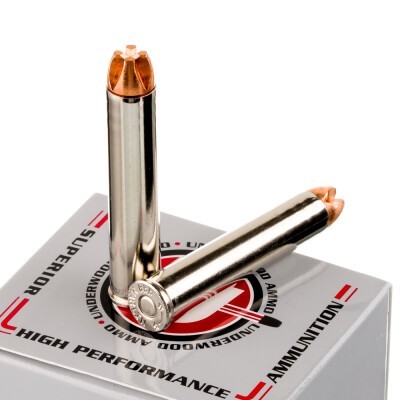 Underwood sets up the Xtreme Penetrator for success by seating it in a premium nickel-plated brass case and above a payload of low-flash propellant. Smooth, reliable cycling. Extra corrosion resistance. Muzzle flash that won’t temporarily blind you at night. All useful tools to the lever-action hunter!
