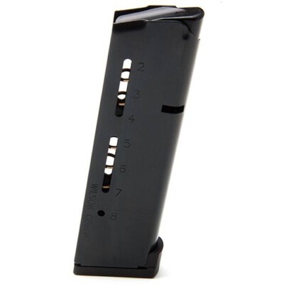 The Wilson Combat 1911 Elite Tactical Heavy Duty +P Magazine is a super high quality aftermarket replacement magazine for Full Size Government/Commander 1911 models chambered in .45 ACP. This magazine holds 8 rounds of ammunition and is made of stainless steel and features a black finish. This magazine is ideal for serious training and everyday carry. Wilson Combat magazines are made to very specific standards to ensure perfect fit and optimal operation. Wilson Combat magazines are made right here in the USA!