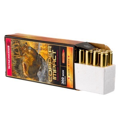 This is Winchester’s Copper Impact .300 Winchester Short Magnum cartridge, loaded with the nontoxic Copper Extreme Point: a multitalented bullet indeed. Its lack of lead quite naturally confers cleaner performance both inside your rifle and inside the venison you intend to eat. The high ductility of copper enables the CXP bullet to sink deeply into its target, even if it collides with said target at a relatively high velocity. And once the bullet’s big red polymer tip gets smashed inward, it forces fast/wide outward expansion and crushing energy transfer.