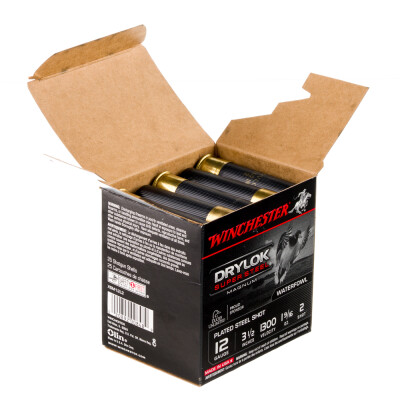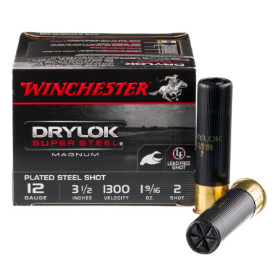 Each Drylok Super Steel load features Winchester's exclusive, two-piece double-seal wad for complete water-resistance and a higher volume, barrel-protecting shot cup. This lets each shotshell deliver a heavier load of rust-resistant steel shot to the target-in denser, more powerful patterns. For superior, foul-weather performance, load up with Super-X Drylok Super Steel shotshells.Symbol: XSM12L2 Magnum Waterfowl LoadGauge: 12Length: 3-1/2"Dram Equivalent: MagVelocity (Feet Per Second) @3Ft: 1300Ounce Shot: 1-9/16Shot Size: 2