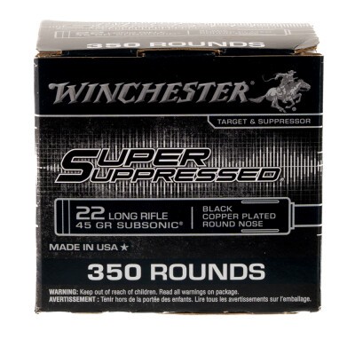 Winchester Super Suppressed .22 LR ammunition is perfect for every shooter who wants to keep it low-key. Its subsonic muzzle velocity will reduce noise signature with or without a suppressor, and it’s designed to reliably operate semi-automatic and all other types of firearms!