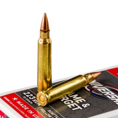 This is no ordinary .223 Rem target ammo. This is Winchester Universal Game & Target – loaded with more ballistically efficient boat tail hollow point bullets, and certain to do you justice whether you’re working over targets or thinning out the varmint herd!