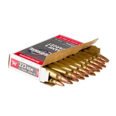 The 62 grain open tip’s nose cavity isn’t functional; it will not fill with pressurized soft tissue to initiate terminal expansion after impact. Its presence simply indicates that the bullet has a form-fitted lead core, as well as a thin jacket which shields the base of said core from hot propellant gasses. That plus the open tip’s heftier weight equates to impressively consistent accuracy for a not-premium-priced range load!